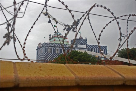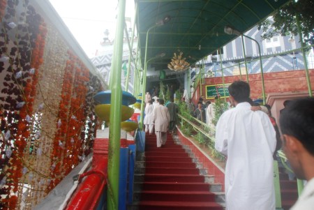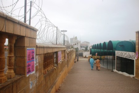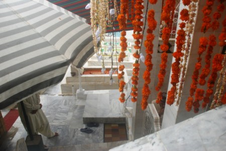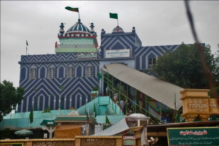 On an overcast day I decided to climb the hill and say my prayers in front of Ghazi Sahab. There is a vast parking lot at the bottom of the hill so going there in a car is not a problem. It was early morning for a Sunday and there was not darbar distinctive crowd. I went through the scanner which announced that I have a camera. The guard told me to get permission from Auqaaf Manager for clicking. Auqaf Office is right at the start of the staircase. Whoever sitting in Auqaaf Manager was kind enough to let me click outside.