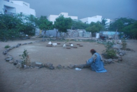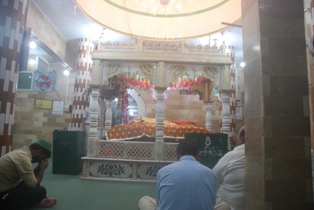 Misri Shah is one of seven saints gurading Karachi from natural disasters. He is also regarded as Abdullah Shah Ghazi’s brother. To get to his shrine you have to take Khayaban Hafiz (one starting from Gizri and heading to DHA) and go past Sultan Mosque and subsequent commercial area (where all the big honchos of banking are). five minutes more and you will reach Khayaban Bukhari signal. Turn right and after couple of minutes ride you will be able to see the shrine. Its not as grand as his brother’s but yet well-trodden and revered.The whole scene is surreal with the backdrop of a typical Defence Area. There are shops selling chuddar, flowers and other things holy and there was a mosque adjacent to the shrine. There was an empty area in front of the shrine where faqirs were relaxing. There were ducks, peacocks and goats. It looked like a miniature of a village set in Defence phase six.