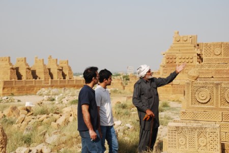 He suffered from heart disease and now wears a battery which makes his heart more dependable. He is fond of poetry and quoted Shah Latif at few occasions. He knew Chowkandi architecture in and out. His greatest desire is to save the heritage for future generations who in his opinion is devoid of arts and crafts display of their older generations. He has been pledging higher ups for constructing a wall around Chowkandi to demarcate the area and quell the possibility of snatching from the tourists. People do that, he said dejectedly. People here don’t understand that foreigners bring money for everyone, he further added. People are losing their interest in things which bring them no cash. He was convinced. He showed a small trail on the pathway between graves. Its ants’ works, he said. See how disciplined and selfless they are. We have lot to learn from them.
