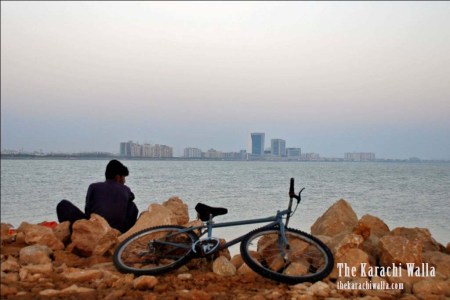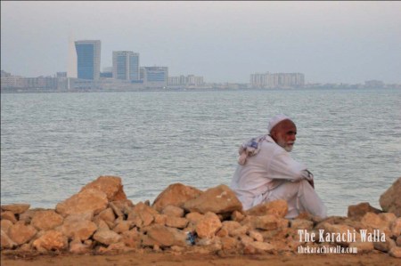A recent land reclaiming project is on the way near the rocks. As much malign as it may be, it still facilitates in getting closer to the rocks. People have taken notice. On Sunday there were around thirty people relaxing on the road being built. There were children, families, loners, elders, cycle wallas, vespa wallas, fishermen and more. Regardless of their ethnicity and differences, they saw the sun setting behind Oyster rocks together, with reverence embodied in a true Karachi Walla. They Oyster rocks turned into the boulders of gold invigorating everyone’s imagination. Infamous KPT fawara started throwing water as moazin finished calls for prayers.