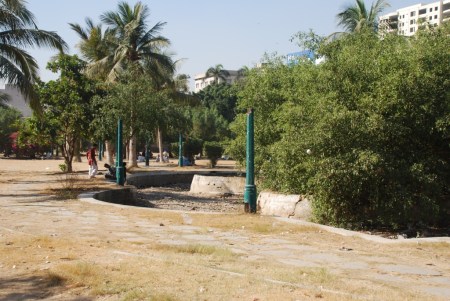 The park was chosen by CDGK as an ideal place for building Car Parking Plaza. Supreme Court deemed it as improper use of public property and stopped its construction thankfully. However City Govt. has found the stay order to be an excuse to stop all sorts of development work. The park has been in this dismal state for years now.