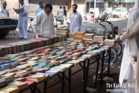 If you are coming from Clifton then take the street which passes through zainab market. Go straight and turn left at regal chowk. Turn into second street on your left. Its better to park your car outside the street as it gets crowded immediately. You will find few food stalls on your left. Have a sip of hot tea or have chola plate. Depending on the time of your visit, you will find twenty to forty book stalls. Few of them sell whatever they find, others specialize in specific genres. You may find publications as old as eighty years. They have the smell of times gone by. Take a little time before indulging yourself in the books. Look sideways and feel the surrealistic scene. The street is not cleaned after a busy weekend night. Trash flies here and there. It bears no impact over visitors. They get indulged the moment they come in. Parents suggesting titles to children. Children suggesting titles to parents. Women falling over digests and novels. School Boys getting stuck over film magazines.
