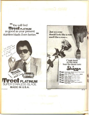 These Ads appeared in SPCA (Society for the Prevention of Cruelty to Animals) Centenary Souvenir. Its funny how many people were interested in regulation of Animal Rights in 70’s. Not like these days. When choice of our interests is as sophisticated as a vegetarian’s taste in juicy steaks. Advertisements are interesting regardless. Many conclusion can be drawn here. Draw your conclusions yourself. Mine is what ‘Makola’ says. Love Karachi. Even if it kills you.