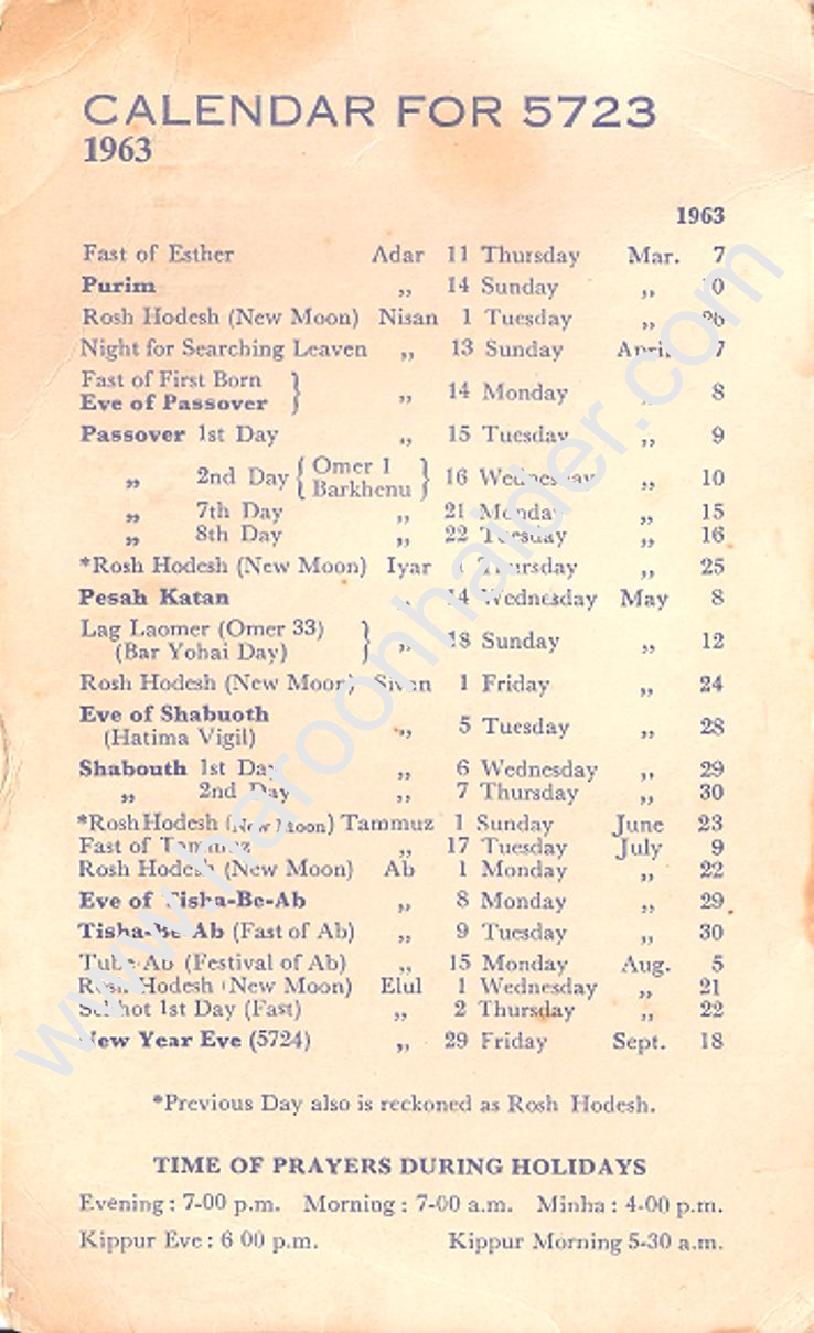 1963 Calendar of Magain Shalome. Courtesy: Haroon Haider