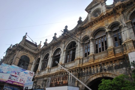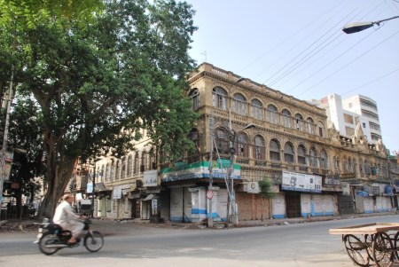 It’s always a pleasure to walk leisurely on M.A.Jinnah road. Its a luxury which you can afford only on a Sunday morning though. Walking around Max Denso Hall intersection in particular is an utter delight. Jehangir Kothari building, Max Denso Hall, Mandiwala building and Mercantile Cooperative Bank Building represent an era of Karachi which is slowly decaying. An era when constructing a building was an artistic undertaking and the proposal’s feasibility was not solely judged by soulless numbers. The buildings in spotlight still serve economic interest but somehow it does not warrant care and respect from their owners. Complex ownership rights, non existent maintenance committees and general apathy towards heritage has led to the scars of time on these structures. Max Denso Hall had its fortune when it was handed over for renovation to Heritage Foundation. Although it still is not open for public but is in safe hands. Jahangir Kothari Building, Mandi Wala Building and Mercantile Cooperative Bank Building have not enjoyed such change of fortune.