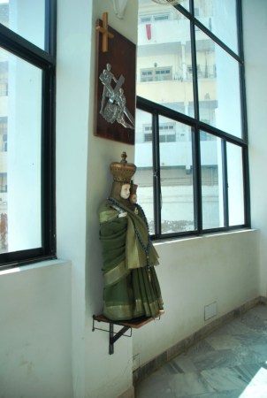 A pleasent surprise. What a pleasant surprise. Finding Our Lady of Fatima sandwiched between Reno Center and Gul Plaza is such a pleasant surprise. Our generation has seen a state of M. A. Jinnah road which would have made Karachiites of yore sick. The road which made a vibrant art gallery once is turning into the most polluted one with tasteless towers of consumerism replacing elegant structures commissioned by notable Karachi wallas. But once you enter the littered street right before the intersection of Garden and M.A. Jinnah road, the sense of loss strikes you right in the heart. At the beginning of the street, once stood the head office of East India Tram Company. Now it is a shopping mall known as Gul Plaza. At the end of the street was famous Reno Cinema which has been replaced by a forgettable structure, that kind of structures that make Karachi architecture scene mundane and characterless but lets leave the sad story of the Tram company and Cinemas for a while and talk about something beautiful.
