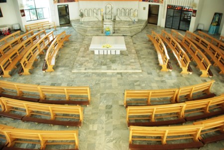 The church has a design which is uncharacteristic to this part of the world. The church is in circular shape with large glass windows on the facade. The seating is in semi circular shape encircling the rostrum. There is a small balcony where music instruments are kept. There is a cricket pitch outside, possibly used by the students of the school. Saturdays and Sundays is a busy affair here. People from nearby areas come here for prayers.