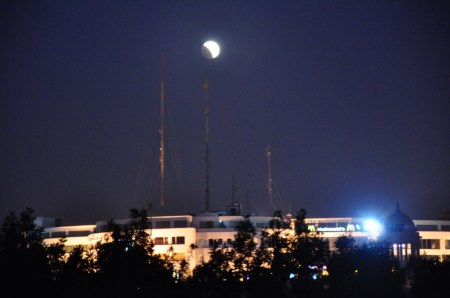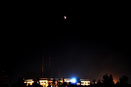 Lunar Eclipse was visible in Karachi from seven to nine yestrday. It was awe-inspiring. It was beautiful. Such astronomical events put the context back in order. ‘Looking up into the night sky is looking into infinity – distance is incomprehensible and therefore meaningless’*. The way our worries and ambition are. In the larger context.