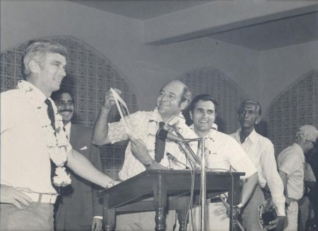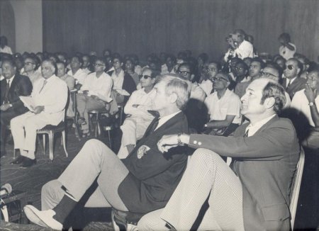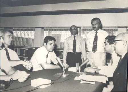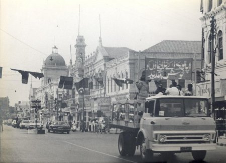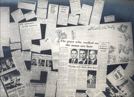 Thanks to US Consulate General Lahore, we are able to see the pictures and some detail of a trip to Karachi by astronauts of the United State’s last mission to the moon. The event was covered heavily by Pakistani media including TV, Radio and Newspaper. But above all it is the excitement of local public which is apparent from the coverage. Karachi University students, citizens at Airport, people at the reception and people lining up at the both sides of Elphinstone street appear excited to welcome the moonwalkers to the city of lights.