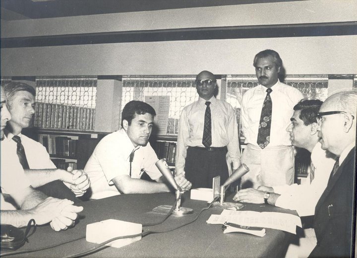 Staff members of Radio Karachi tape an interview with the astronauts at the Karachi USIS library. The 20-minute interview was aired over the nation-wide Pakistan radio network.