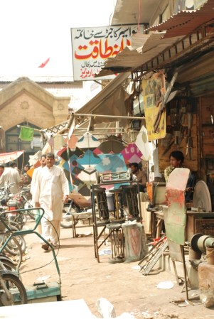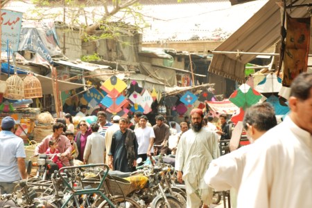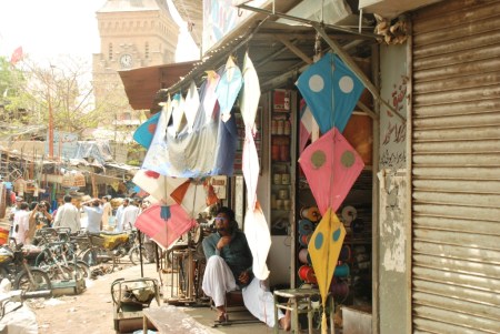 One of the many arteries of Empress Market. Kite Sellers Section is an anomaly in this hyper-mart. Kite Sellers have consolidated at the entrance facing infamous Rainbow center. Colorful and Comprehensive, The Kite Shops sell all local types of Kite you could imagine; Standard Square shaped, Oval shaped, Challaydar, Lukhnow Cut and Tailwali kites. Further customization is done by putting different designs and messages on the paper. The business consolidated at Empress because it became one stop purchasing center for other small scaled vendors in Karachi and retailers from interior Sindh who place orders here for bulk purchases. The clients also include five star hotels and clubs across the city when basant and other festivals are arranged in the city.