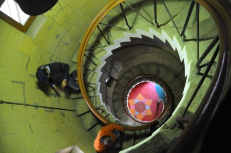 The small protestant church right next to it is called the St Paul’s church. It is much older than the current lighthouse and its roof stands on wooden trusses. The place is locked up and the karachi walla could not make his way inside. Too bad. Even the chowkidars at the lighthouse were not welcoming. You need to know someone to make your way in. Photography is prohibited. There are some sensitivities which a karachi walla like me fails to understand. It is beautiful from inside. Bold paint, design and light adds to the flavour. The swirling staircase gets narrower as you reach closer to the top. The place is really old. The optical setup from good old days is intact and maintained well by KPT. The base on which the giant optical setup rotates is not fueled by a generator but is winded using a key! Move out to the balcony and experience the view. Feel the vastness of Arabian Sea. Turn around and witness the vastness of the city. Its rusty skyline, narrow lanes of Manora town, busy kemari port, fast moving boats, magnificent oyster rocks. Everything looks tiny, pure and free of trouble. You feel like believing in the city again, drowning all its sorrows in your heart.