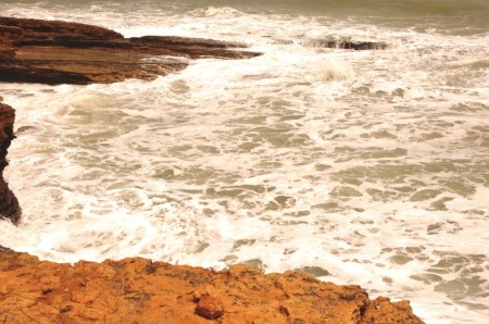Paradise point was the next stop en-route. The place was bit more crowded. The waves were in full swing, hitting the rocks with full throttle, making exquisite prints on their way back. The shops and huts have eroded with time leaving people to their own arrangements. There were children, there were women, there were onlookers.