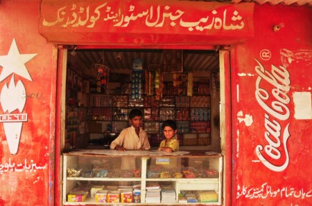 We moved out. Thirsty and tired, we looked for a bottle of cold water. Fearing we might not be able to get it on a Ramadan day but it proved baseless when we reached the first general store outside the French beach. The boys running the shop proved to be good hosts and even posed for a photo. We skipped Mubarak village as we were running out of time.