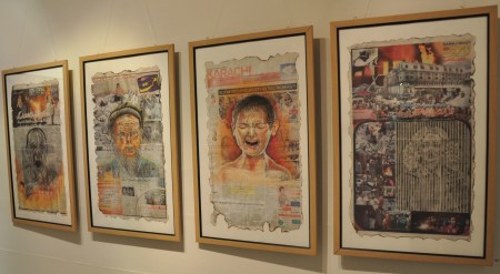 The exhibition featured photo collages of the victims and a timeline of major incidents in Pakistan. A heap of planes made out of paper were kept in the middle depicting our attitude to such incidents after a while. A wax face in the centre depicted how it would have looked in the last moments of a helpless victim. The Karachi Walla froze their for a moment. A collection of paintings on newspaper was a haunting depiction. Equally brilliant was a collection of unknown faces. The way Baldia fire victims are remembered now. As a collection of unfortunate beings.