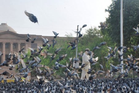 The we drove past DJ Science College, Mitharam Hostel, Old British Council, Aram Bagh and Sevakunj Hostel. We finally stopped at Kabootar Chowk opposite Sindh High Court. Little kids were throwing corn for pigeons to chew. My guest was moved with the scene and took dozens of pictures.