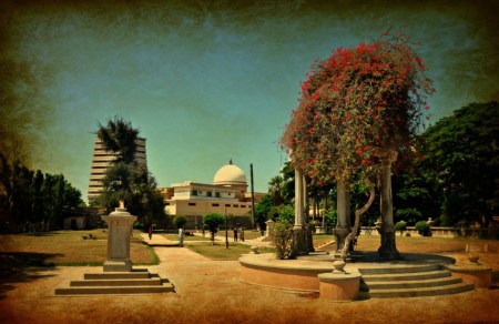 The Museum’s gate was shut but we could see people inside so we thought there might be another gate. We drove around but instead ended up going to Hindu Gymkhana. The gate keeper did not dare asking saab log about the purpose of the visit. Very kind of him. We took pictures until a suspicious guy reached us.