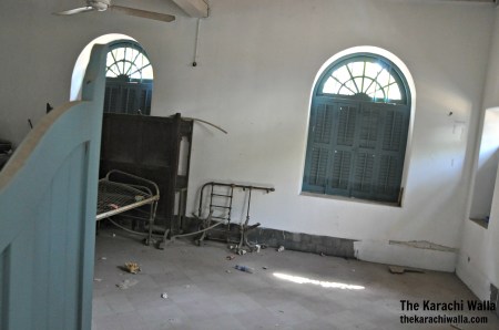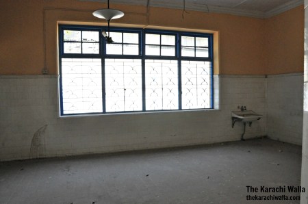 The Karachi Walla went there on a sullen Sunday morning when quettay ka hawa was blowing through empty street, scattering fallen neem tree leafs around the front area. There was a monument on the right honoring Nusarwanjee senior. A fountain lies in the middle of the front parking area. A foundation stone is part of the it on which some idiot has thrown blue paint. The windows and doors stand firm along with rest of the building thankfully. The main staircase is locked. I peeped through the windows into the empty room. Some basic furniture still lies there. There is sadness here. I looked up at the front gate’s top. Goolbai Nusarwanjee Mehta Paris Maternity Home is written on intricate glass work. Floor Tiles have survived. The front wall is painted blue. Probably recently but somehow it still goes with the building. There are few houses behind the building, inside the boundary wall. Probably built for the staff. People still live there. No idea if they have any connection with the Maternity home but they can be trouble if they find you clicking around. Breaks my heart, that people are forced to fear each other for no reason. Then again you can’t really blame them. Such are the times.