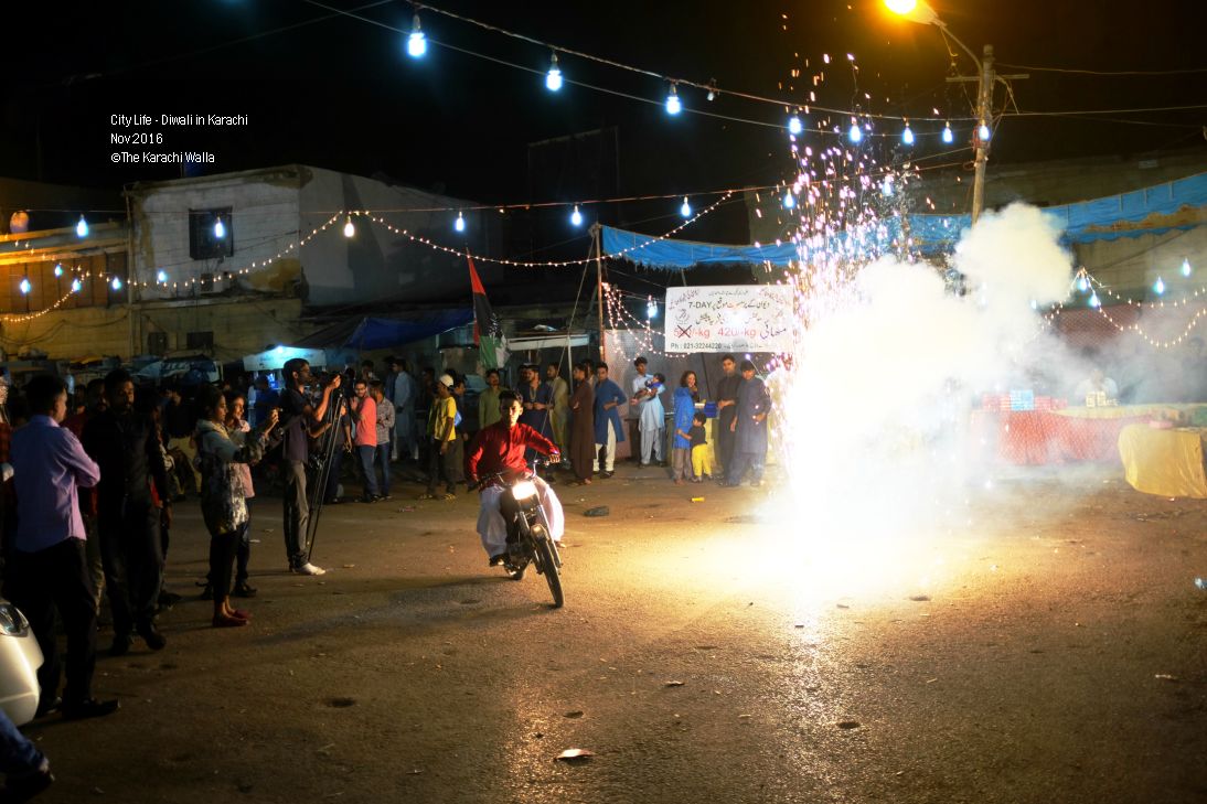 You are here: Home » City Faith – How my experience of Diwali in Karachi took me to a city I never knew » 3-a-rider-passes-in-front-of-cracker