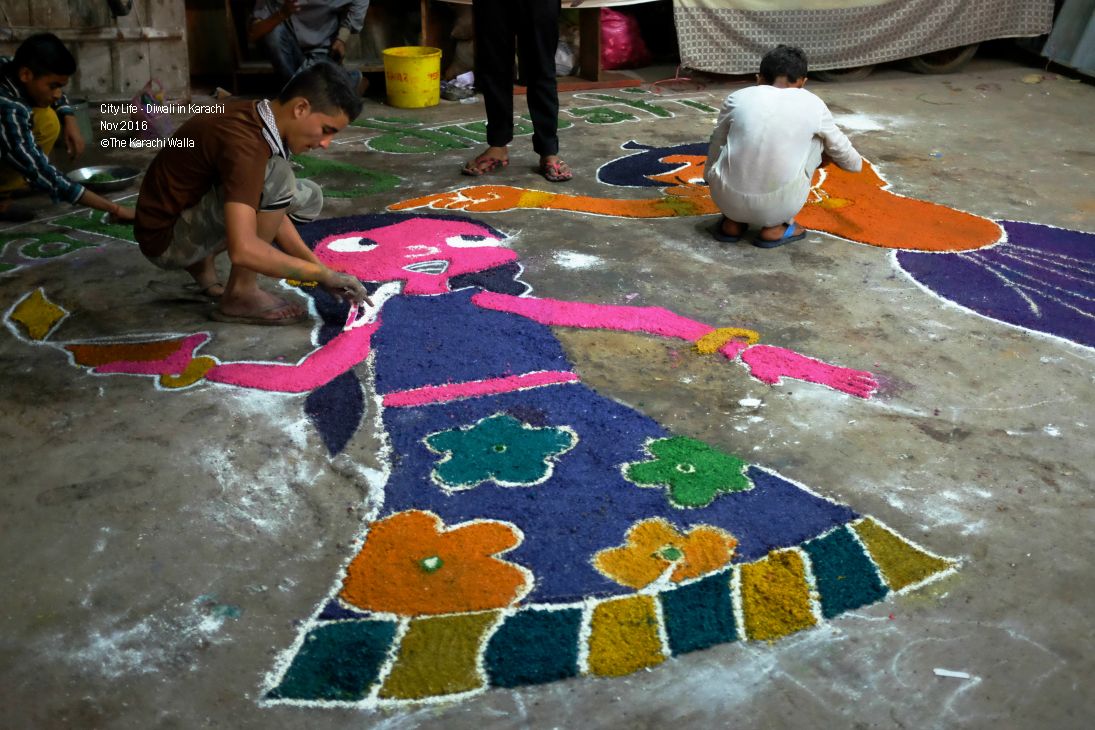 You are here: Home » City Faith – How my experience of Diwali in Karachi took me to a city I never knew » 5-a-design-on-floor-in-one-of-the-streets-behind-shri-swaminarayan