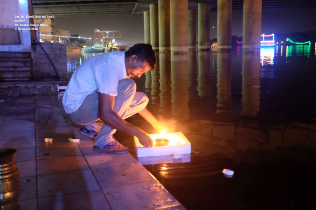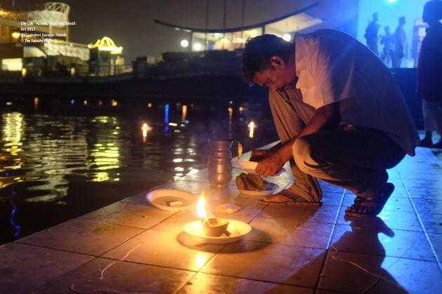 Kelash is done with all his lamps. There were only eight to ten. He tells me that there was a time when he used to release more than 200 lamps into the water.