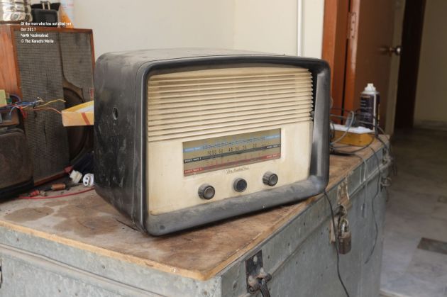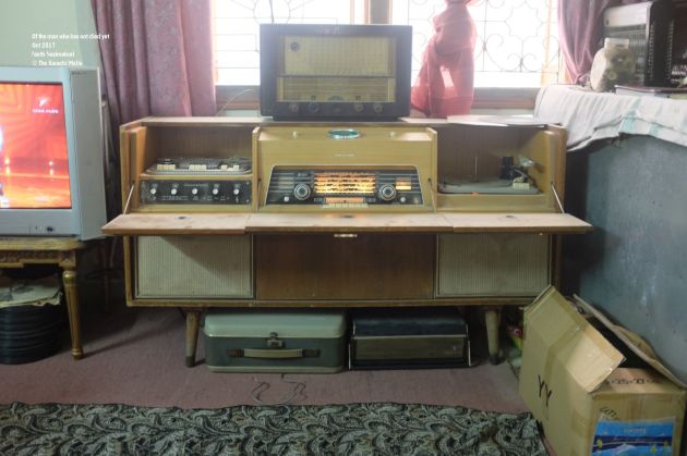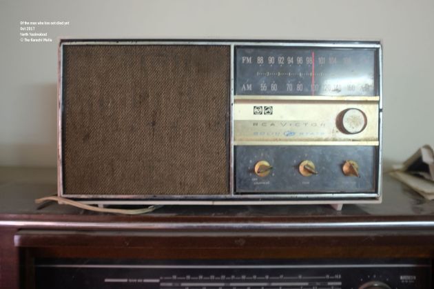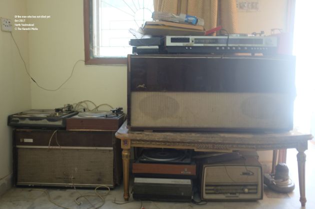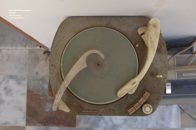 Of the man who has not died yet. He has made his presence count. Holding on to nostalgia has given him purpose and a source of earning. Making money makes him relevant in his house where he lives with three of his children and a number of his grandchildren. The house is big enough for all of them but his room is quite small. Though big enough for a number of radios, turntables, records and other antiques. Some of them work, some of them don’t. Some of them will never work but they will still make it as a collectible in some house or a television commercial. He has turned his restroom into a store, with amplifiers, spool tables and radios lying on top of each other. There are more under his charpai. I open the door to veranda and I see more of them.