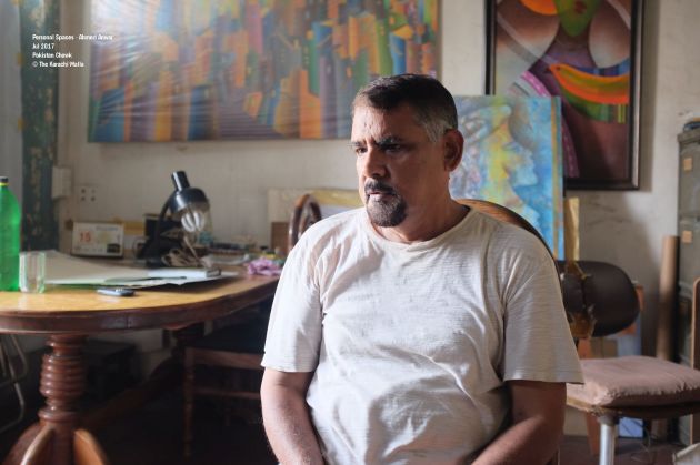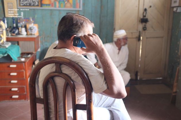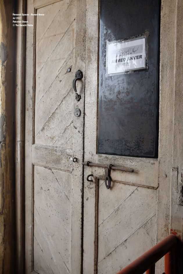 A man of many talents. Ahmed Anver is a veteran artist who is very well connected to the city. He lives near Pakistan Chowk. You can see Pakistan Chowk from his balcony. He lives on third floor. His apartment has a wooden roof and wooden walls. A lot of amendments have been done to the building so it is difficult to understand the original layout. He has been collecting antiques; radios, turntables, lamps etc which add further character to his living space.