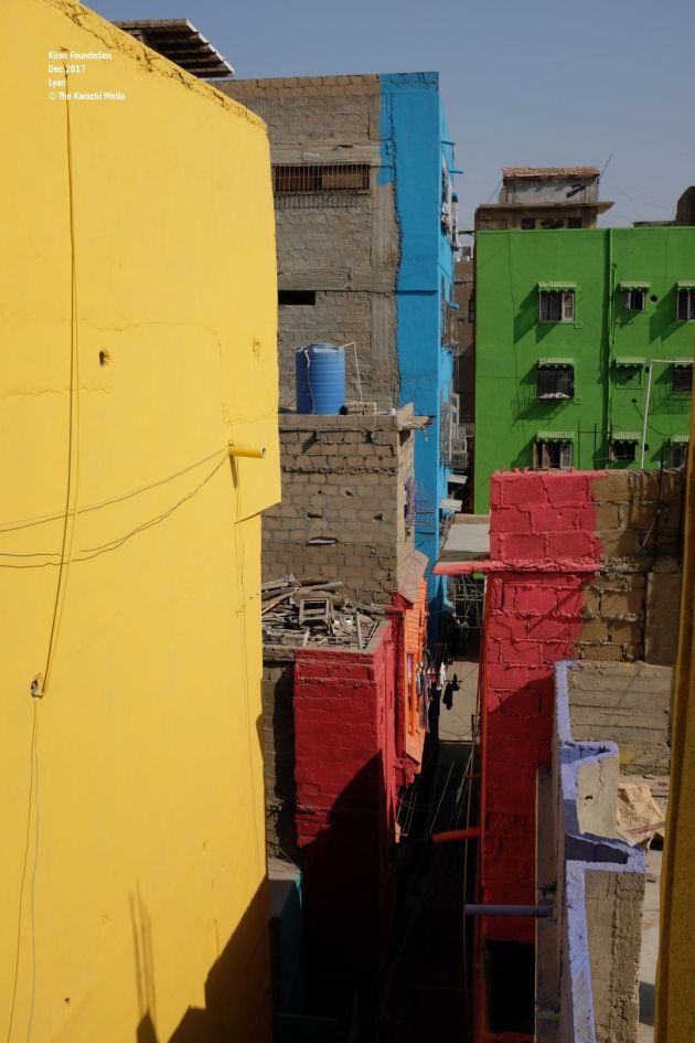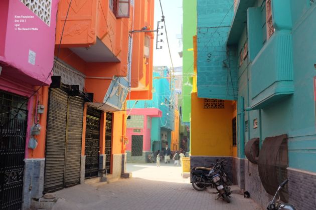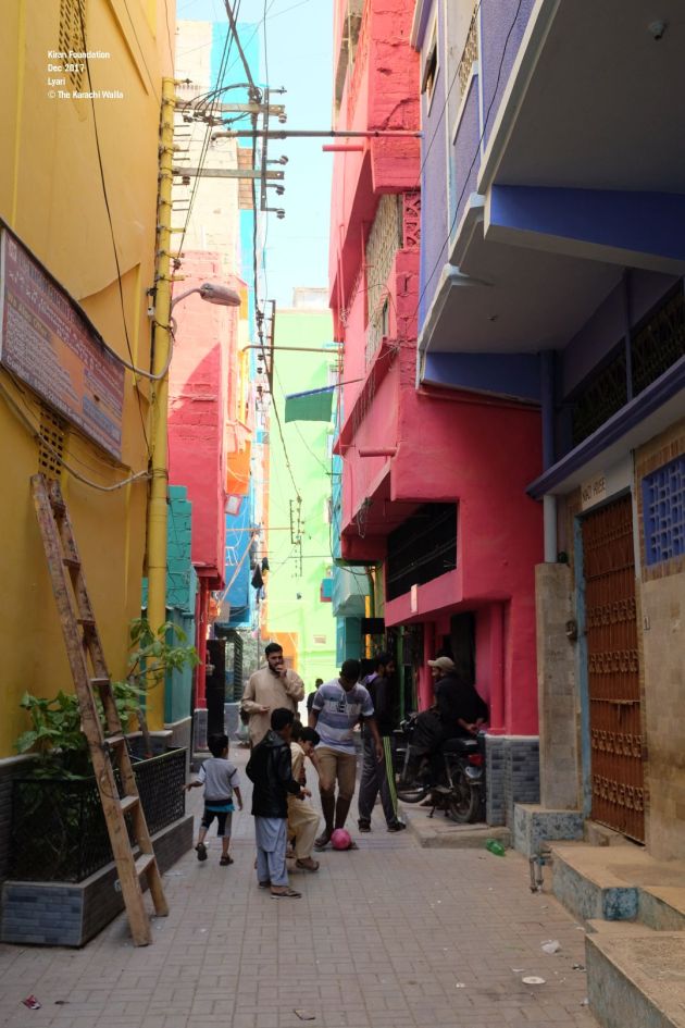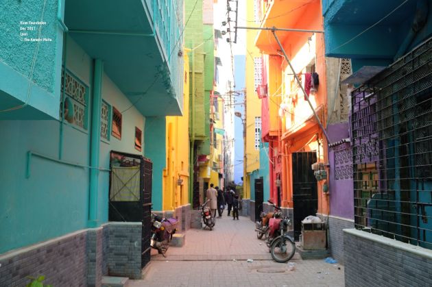 Karachi’s Happy Street. The streets in Lyari are dull, most of them without any paint. Therefore this particular street off Atmaram Pritamdas Road stand out and catch your attention from a distance. Painted with vivid colors, paved with envicrete tiles and decorated with occasional flower pots, the street could be mistaken to belong to some famous tourist destination.
