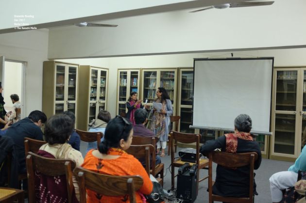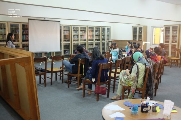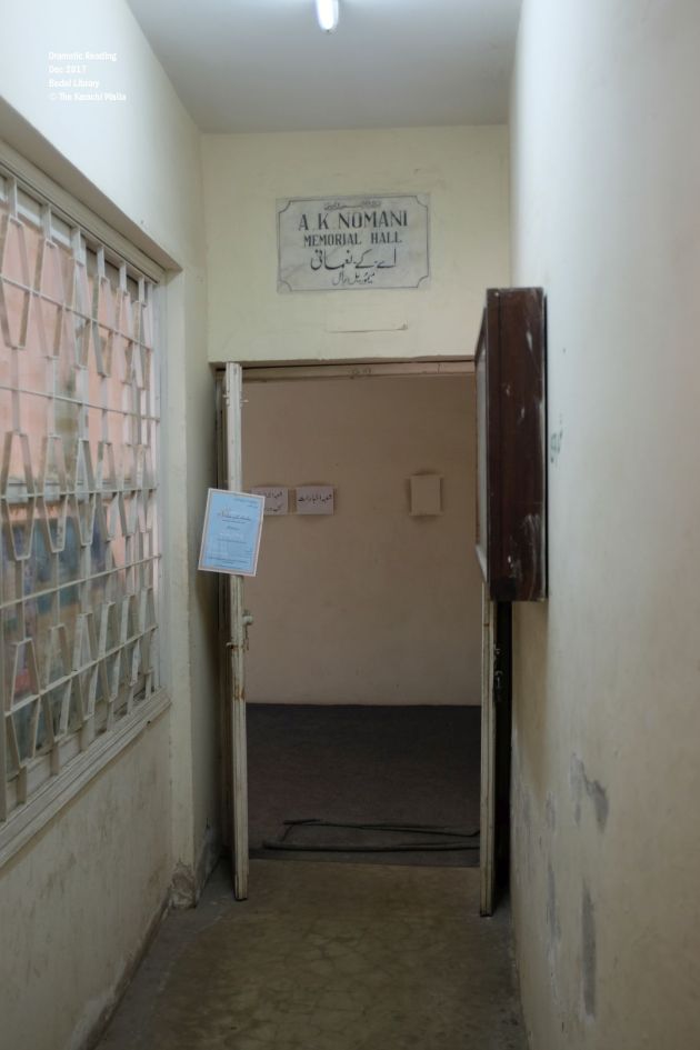 Karachi Public Library Project organized a dramatic reading by Zambeel at Bedal Library. The event also featured screening of a short film by Madiha Aijaz. Bedal Library is situated on 2nd floor of a community hall near Char Minar roundabout in Bahadurabad. I found Munaza Gulzar, co-founder of Karachi Public Library Project at the entrance of the hall where session was to be conducted. We had customary formalities. She has been working to revive Public Library spaces to play a greater role in social engagement. They have been conducting similar sessions around the city and the response has been encouraging.