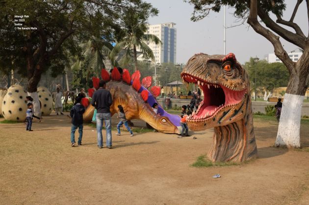 There were signboards explaining everything about the dinosaurs but there was not anything which celebrated philanthropy of founding fathers of modern day Karachi including Behramji Jehangirji. There was not any chronological listing of important events which have had happened here in this park. In my two visits, I still have not found the library opened and there was no mention of timings if they did not match with rest of the park. The reading room looked neat and well stocked from outside. The park like most of Govt. projects have been built on raised platform dwarfing Empress Market, St. Andrews and Gulbai Maternity Home, its aesthetically pleasing neighbors.