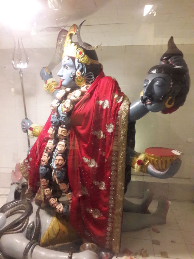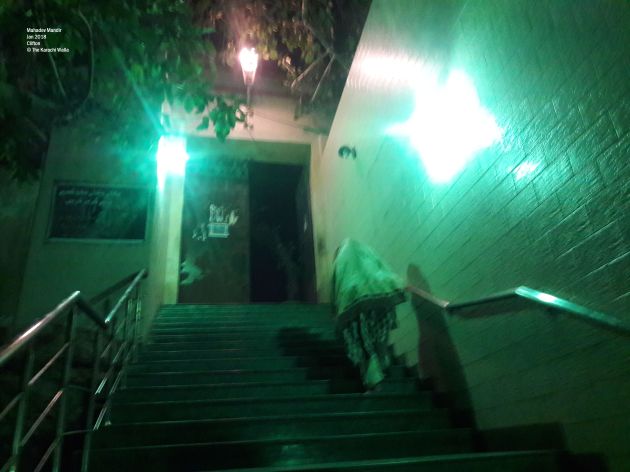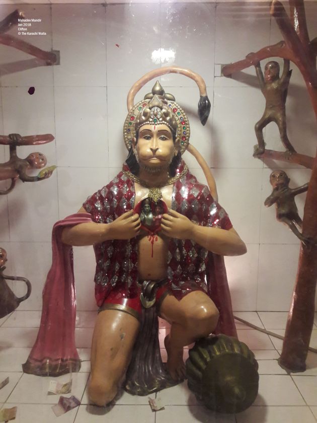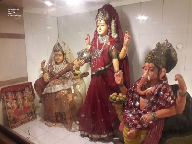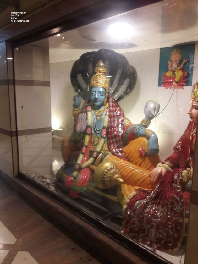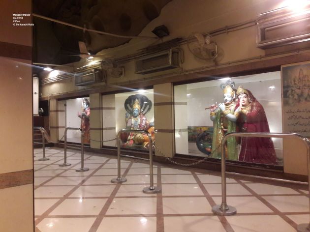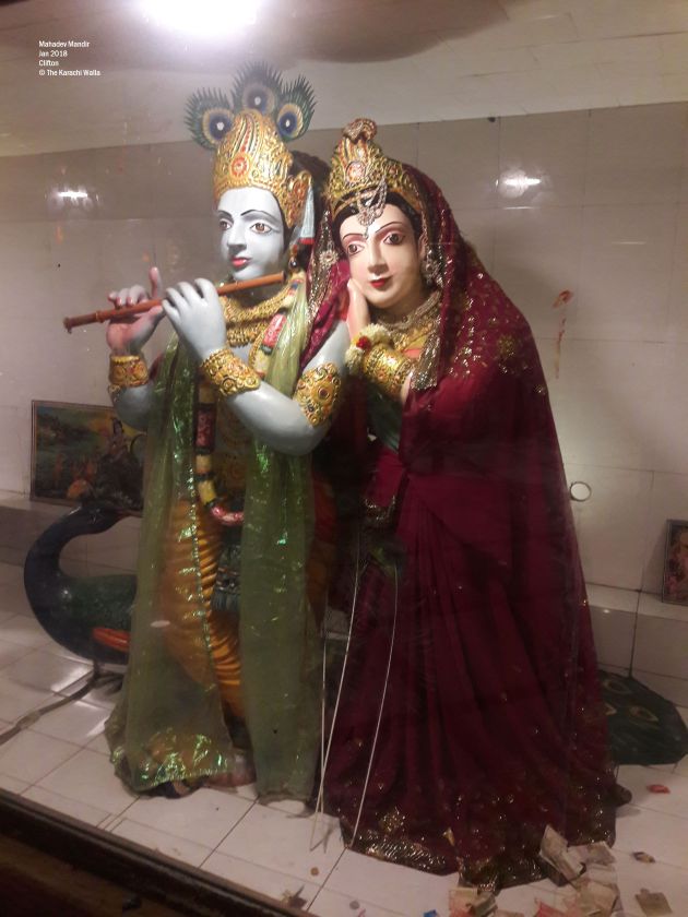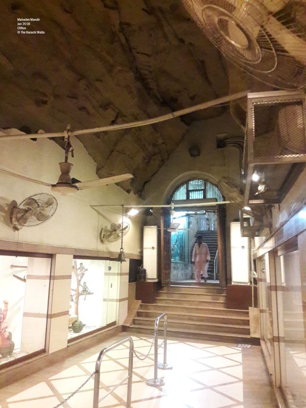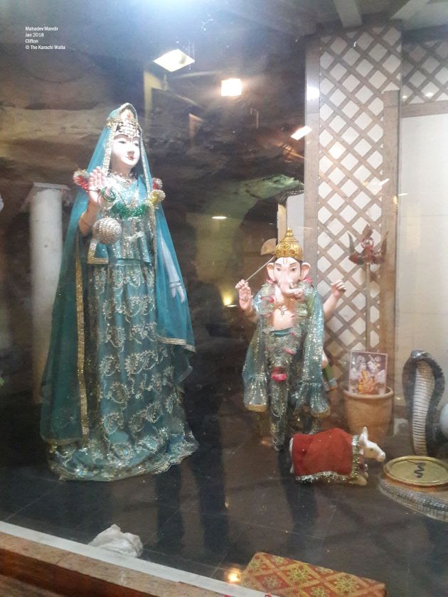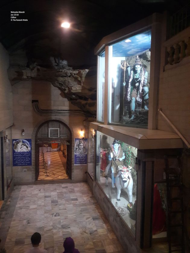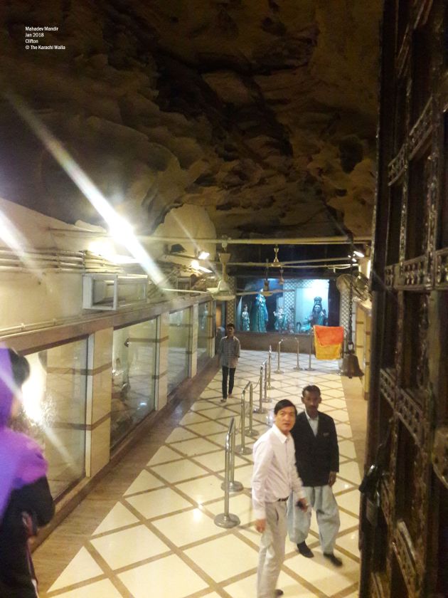 The temple’s entrance is through Bin Qasim park but it actually is situated right under the parking lot of the park. A staircase takes us down to the first level where the biggest attraction is a centuries old banyan tree. It is not particularly picture perfect but adds character to the place. There is a tiled floor which is glittering under the light of energy savers. The is lot of communal space which brims with people during festivities. Another staircase takes us down inside the cave where one of the biggest murtis are kept. Most of the murtis have been sculpted by Fakeera, a talented sculptor based in interior Sindh. The display is exquisite with properly lit boxes giving a feel of walking inside a well curated museum. There are murtis of Ram, Sita, Goddess Kali, hanuman, Ganesh and more. The cave used to be submerged in sea water for most of the year initially. Later shoreline receded and present day temple emerged over the years. However you could sense that the cave is not inside pure rock and perhaps is a limestone formation making it susceptible to outside intrusions such as development of underpass right next to it. There are pigeons who have made the cave’s roof their home.