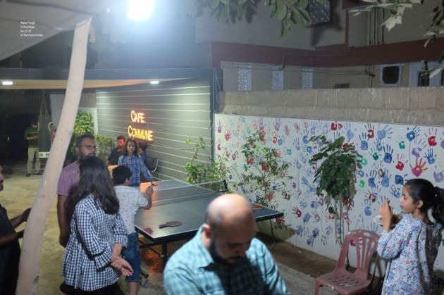 There was a break after the session and we stepped out towards the patio which was already crowded. The patio is perhaps the most lively part decorated with murals and fairy lights and buzzing with the energy of discussions around the tables. The menu of cafe however was quite bland with very few items. Looked like that the team behind Cafe Commune focused more on the launch activities and giving the space a creative look. They definitely need to invest time to upgrade the menu now!