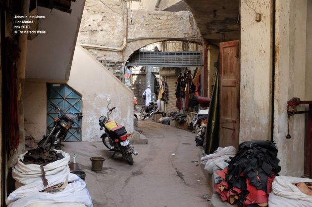 Negotiating Juna Market traffic is no mean feat on a working day. We step out of our car at Napier road and start walking towards leather market – one of many specialty areas within Juna market – where the bookshop is located. The streets might be encroached and crowded but they have that character which made oriental markets popular and much romanticized. The market area was one of the oldest and earliest settlement outside walled city of Karachi and you can sense that while walking its alleys. However there’s another way of looking at it also. Negligence and lack of planning in later years has made a mess of what was originally a very well organized market. Traffic and pollution have made shopping experience miserable and hours are wasted in covering small distances.