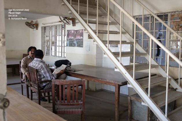 Jigar Muradabad Library is in Block 5 Nazimabad and can be accessed through Paposh Nagar or Riaz uddin Ahmed road. The streets in the area get narrower as you diverge from the main road. It is located adjacent to a community park which despite being in dire condition is popular with residents of the area. We find a lot of families basking in winter sunshine on a regular working day in December. That fast disappearing art of leisurely basking in winter sunshine!