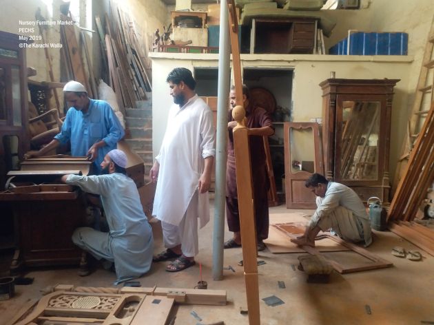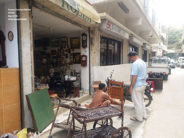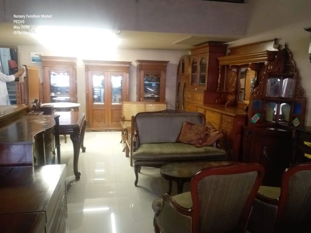 There are three shops which make a visit to Nursery worthwhile. First on this list is Nazar sons, which is well known for dealing in second hand vintage furniture. They used to have a shop on the fringes of Defence that they closed sometime back. However they still have shop in Nursery which smells of teak. The shop has eclectic collection of furniture as it is fed through second hand collection and every piece is worth stopping at. There is a small workshop at the end where old furniture is given a makeover. This Saturday I found resident carpenters exploring a vintage ‘Munshi’ desk, one with many secret small drawers.