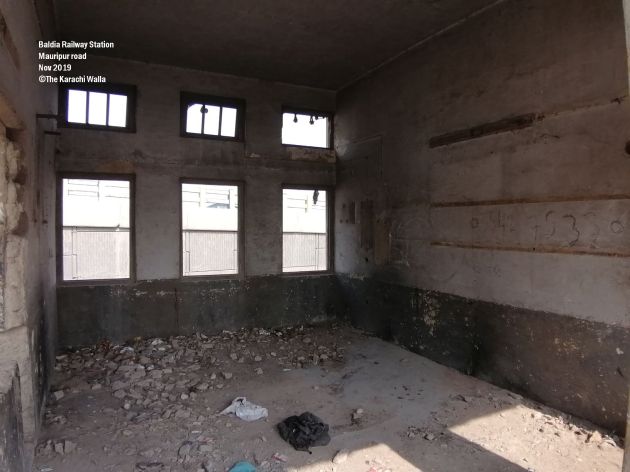 There is not much to stop for at Baldia Railway Station these days. There’s just a skeleton of a basic building left hanging. All the fixtures and equipment have been removed. Unlike Lyari railway station, there is not any settlement nearby therefore the platform and empty rooms have not been put to any alternate use. However there are some signs that someone has used it as sleeping quarters briefly. There are some foul drawings inside and an unpleasant smell. There’s some plantation and branches, both on the tracks and the platform. It is hard to imagine how life here would have been during the glory days of Karachi Circular Railway. The station has a simple basic design with two rooms and an open area for people to queue up for getting tickets. Both rooms have lots of windows and roshandans. There are some instructions written above the window of one of the rooms. That’s perhaps the only surviving signage which hints that the building was used as a railway station.