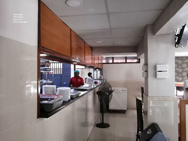 There’s something different about the layout and aesthetics of the cafe as well. The sitting area ratio with non-productive space is astonishing. In new cafes, sitting area is increased at the expense of kitchen, reception and other essential areas for the functioning of a cafe. However Chullu Kebab Nayab has almost equal space for Kitchen as the sitting area while reception area offers staff another access to the kitchen making sitting area exclusive to the customers. While there is no air-conditioning, there are ample fans and windows which keep Chullu Kebab Nayyab pleasant even during warmer days. The basic furniture and fixtures keep the ambiance simple but elegant.